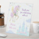 Panneau de piédestal "S'il vous plaît en prenez un!" pour Anniversaire avec une adorable licorne avec des ailes, qui est entourée de mignonnes photos d'un château magique, des nuages et des bouts festifs.