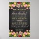 Panneau de bienvenue de mariage au tableau noir floral vintage 34 x 58 cm ; Il a volé son cœur, alors demain elle lui vole son nom de famille !