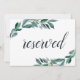 Indiquez les places réservées à votre mariage avec ce panneau botanique chic. Personnalisez avec une ligne de texte personnalisé en écriture de script de calligraphie (illustrée par "Réservé"), encadrée par une verdure d'aquarelle luxuriante et des feuilles d'eucalyptus.