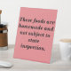 Pour les produits en conserve, modifier le mot "aliments" et remplacer les mots "produits en conserve" de sorte que le signe indique : Ces conserves sont faites maison et ne sont pas soumises à l'inspection de l'État.