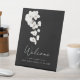 Panneau de table de mariage floral d'orchidées blanches et noires modernes - Design botanique monochrome élégant. Élevez votre célébration de mariage avec notre panneau de table de mariage moderne noir et blanc présentant l'attrait intemporel des orchidées blanches. Le design minimaliste capture l'élégance de ces fleurs, créant un chef-d'œuvre botanique sophistiqué. Avec l'ajout d'un script blanc, ces panneaux de mariage dégagent un sentiment de beauté raffinée qui complète parfaitement l'esthétique moderne. Partagez la beauté de votre histoire d'amour avec la famille et les amis à travers ces panneaux de table de mariage élégants et captivants.