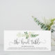 Une carte de table pour la réception de mariage de la mariée et du marié avec de jolies aquarelles de verdure. Ficelle au-dessus des cartes de table de mariage individuelles ou des plans de table. Un panneau de table supérieure de mariage avec une jolie police rustique. Des cartes de table uniques assorties sont également disponibles dans cette section. L'illustration a été peinte ici dans le studio et est unique à The Stationery Concierge.