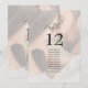 Ce graphique de table élégant pour mariage avec photo présente un fond photographique doux et une typographie raffinée, créant un point de mire romantique et soigné pour votre réception de mariage.
