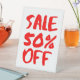 Panneau de vente contemporain à 50 % de réduction en rouge frappant pour la promotion des ventes de votre magasin de détail.