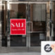 Autocollant de vente en fenêtre personnalisé pour les entreprises. Le panneau peut être personnalisé avec un pourcentage de remise ou d'autres textes sous le texte principal de vente. Utiliser pour les petites entreprises, les ventes saisonnières ou pour attirer les clients