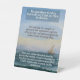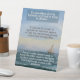 L'image d'un panneau de piédestal est une affiche avec une scène océanique pacifique en arrière - plan. Le texte de l'affiche est blanc et marron, avec une citation sur l'interrogatoire et la confiance en Dieu. Il souligne qu'il est naturel pour les humains de remettre en question les mystères de Dieu, mais la vraie croissance spirituelle vient de la confiance dans sa direction. L'affiche utilise l'analogie d'un marin naviguant dans l'océan sans tout savoir à ce sujet pour illustrer le concept de confiance dans la direction de Dieu.