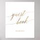 Ce panneau élégant de signature de livre d'or en calligraphie dorée est parfait pour un mariage simple. Le design neutre présente une affiche minimaliste décorée d'une typographie romantique et fantaisiste en faux feuillet d'or.