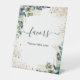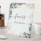 Un fond blanc chic. Décoré de feuilles d'eucalyptus aquarellées vertes, de brindilles, de verdure, de feuilles dorées factices et de taches de paillettes dorées. Avec le texte : Faveurs. Prenez-en un !