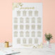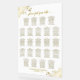 Cette belle carte de 23 places est conçue sur un panneau acrylique flexible. Il présente une conception élégante et glamour avec de la calligraphie en écriture or et des boucles et des tourbillons en fausse feuille dorée dans les coins. L'arrière - plan blanc est partiellement opaque, mais la lumière brillera derrière le panneau, ce qui lui donne une belle lueur. Peut accueillir jusqu'à 230 personnes avec 10 places par table. Une façon merveilleuse d'ajouter élégance et style à votre réception de mariage tout en facilitant la recherche de sièges par vos invités.