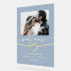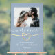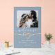 Bienvenue aux invités avec grâce et style en utilisant notre mariage minimaliste bleu acrylique poussiéreux signe. Décoré d'une photo du couple, d'un coeur romantique de cordes d'or, et d'un script manuscrit branché, il incarne l'élégance moderne et le charme personnel.