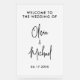 Signe d'accueil minimaliste moderne mariage avec typographie de calligraphie simple.