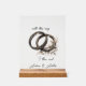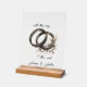 Un ensemble de bagues mariages pour la mariée et le marié, entouré d'un design floral. Le texte est le nom de la mariée et du marié, et "avec cette bague, je t'ai épousé".