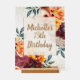Célébrez dans un style intemporel avec ce panneau d'anniversaire en acrylique clair de 11 po x 14 po qui présente d'élégantes flancs d'aquarelle dans des tons chauds d'orange, de bordeaux et d'or. L’arrière - plan translucide lui donne une touche moderne et sophistiquée, tandis que le texte personnalisable, illustré ici par "75e anniversaire de Michelle", le rend parfait pour toute célébration d’étape. Idéal pour l'affichage sur un chevalet ou une table, ce panneau acrylique floral ajoute un accent étonnant aux entrées, aux tables de desserts et aux cadres photo.