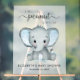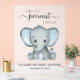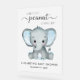 Un joli panneau d'accueil en acrylique gelé pour bébé avec "A Sweet Little Peanut Is On His Way" écrit dans un mélange de typographie gris doux et un script élégant avec des swashes et une aquarelle bleu pastel d'un bébé éléphant. Personnalisez avec le nom de la mère et la date du baby shower dans une simple typographie grise.