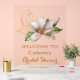 Aquarelle Magnolia Purple Fête des mariées Florale Accueil Acrylique Signs Mariage dispose d'élégantes fleurs de magnolia aquarelle en lavande douce et violet avec feuilles verts sur un arrière - plan blanc accentué d'or avec vos informations d'Affiche de bienvenue Fête des mariées ci-dessous. Conçu pour vous par Evco Studio www.zazzle.com/store/evcostudio