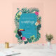 Symbole de bienvenue aux couleurs mariage, avec un cadre turquoise bordé d'un toucan audacieux, entre fleurs d'hibiscus et feuilles de palmiers. L'arrière - plan blanc est facultatif et peut être modifié s'il est préférable. Ce design acrylique tropical est facilement adaptable pour l'été, plage et mariages tropicaux, anniversaires et autres événements spéciaux. Recherchez ID577 pour voir les produits correspondants.