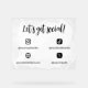 Panneau en acrylique blanc translucide pour une petite entreprise à usage promotionnel pour partager vos médias sociaux et l'adresse de votre site avec vos clients et clients avec Let's get social! dans un script noir, les icônes de médias sociaux, et vos gestionnaires de médias sociaux dans les polices modernes contre une éclaboussure d'aquarelle blanche qui est un peu transparent aux bords. Signal acrylique promotionnel sur les médias sociaux pour votre petite entreprise en noir et blanc. Les médias sociaux acryliques signe pour promouvoir votre petite entreprise dans un joli combo blanc et noir.