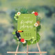 Panneau de bienvenue coloré de la douche nuptiale avec cadre vert printanier bordé d'un toucan audacieux, entre fleurs d'hibiscus et feuilles de palmiers. Cette enseigne en acrylique tropicale est parfaite pour l'été, la plage et les mariages tropicaux, anniversaires et autres événements spéciaux. Recherchez ID577 pour voir les produits correspondants.