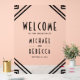 Modern art deco theme wedding welcome sign featuring a minimalist frame.