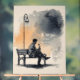 Ce design illustre magnifiquement la douleur tranquille et l'espoir de l'amour unilatéral. L'homme avec un rose, assis sous la lampe de rue, symbolise des sentiments indéfectibles et le courage d'aimer sans attendre quoi que ce soit en retour. Une oeuvre d'art émouvante pour les amateurs d'art émotif et significatif. ArtivaNest - Une vision de Neeranchal