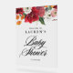 Bienvenue aux invités à votre événement avec ce panneau en acrylique de baby shower personnalisable. Il dispose d'une guirlande fleurie d'amaryllis, de roses, de chrysanthèmes et de ranunculus. Personnalisez ce panneau de baby shower botanique en ajoutant les détails de votre événement. Ce décor de baby shower fleuri conviendra parfaitement aux baby showers d'automne et d'hiver.