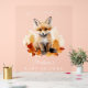 Bienvenue dans votre baby shower d'automne avec cette adorable enseigne de baby shower d'accueil sur le thème des bois. Le joli panneau d'accueil baby shower présente une aquarelle illustrant un renard bébé assis sur les feuilles d'automne dans les tons orange, rouge et jaune avec un arrière - plan acrylique transparent. Personnalisez le signe d'accueil du baby shower renard avec le nom de la future mère et la date. Conçu pour coordonner avec notre mignonne collection de baby showers d'automne des animaux des bois.