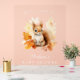 Bienvenue dans votre baby shower d'automne avec cette adorable enseigne de baby shower d'accueil sur le thème des bois. Le joli panneau d'accueil baby shower présente une aquarelle illustrant un écureuil bébé entouré de feuilles d'automne dans les tons orange, rouge et jaune avec un arrière - plan acrylique transparent. Personnalisez le signe d'accueil du baby shower d'écureuil avec le nom de la mère et la date. Conçu pour coordonner avec notre mignonne collection de baby showers d'automne des animaux des bois.