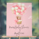 Baby shower ROSE SIGNER AVEC DES NUAGES ET DES BALLONS ROSES ET UN OURS À TEDDY.