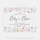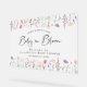 Elégant panneau d'accueil en acrylique semi-transparent gelé avec aquarelles de fleurs sauvages et "Baby in Bloom" dans un script chic. Personnalisez avec le nom de la future maman et la date de la douche dans une simple typographie.