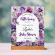 Un Baby shower sucré violet avec des roses violets. Vous pouvez personnaliser ceci avec vos propres détails.