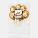 Mariage acrylique signe des ballons d'or avec des roses blanches et du texte Juste Marié sur le ballon central Nom du marié, lieu du mariage et date du mariage en couleur or