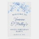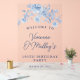 Bienvenue à vos invités dans le style avec cette bannière d'accueil florale bleue personnalisée. Tout le texte est modifiable.