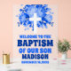 Panneau En Acrylique Baptême Floral Bleu Moderne Boy Bienvenue Frosted