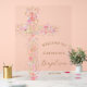 Panneau En Acrylique Baptism pink flowers cross welcome clear sign