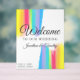 Belle aquarelle arc-en-ciel personnalisée Bienvenue à Notre enseigne acrylique Mariage avec de jolies touches de peinture artistique pleine de couleurs vives pour un événement LGBTQ. Customisez avec votre nom dans un élégant script cursif.
