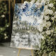 Ceci est un panneau de bienvenue en acrylique pour une Baby Shower Something Blue Before I Do avec des fleurs en bleu poussiéreux !