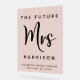 Élégant panneau de bienvenue en acrylique rose blush givré pour la soirée de mariage, avec "La Future Mme" écrit en typographie simple et un grand script élégant, le nom de jeune fille et la date de la soirée de la mariée.