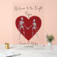 Ce signe de Mariage de répétition acrylique facile à customiser est accentué de squelettes tenant la main et le dicton Bienvenue à la nuit précédente sur un arrière - plan de coeur rouge. Si vous avez besoin d'aide pour customiser cet article ou si d'autres articles sont nécessaires, contactez-nous à l'adresse prettyfancyinvites@gmail.com avec votre demande.