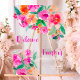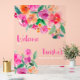 Signe de bienvenue transparent à la réception de mariage en écriture florale rose chaud vif avec des fleurs peintes à la main en gras rose, orange rouge et feuillage. Parfait pour une garden party de réception de mariage sur le thème boho de l'automne. Avec une typographie de script moderne.