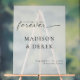 " BIENVENUE À NOTRE FOREVER " Elégante, Police scénarisée, Blanc-Transparent, Acrylique Mariage Signer avec votre nom et votre date.