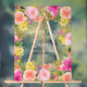 Un panneau de bienvenue à une garden-party de mariage bohème avec une illustration florale peinte à la main avec des fleurs sauvages de prairie en rose, jaune, pêche, des roses, de l'eucalyptus vert sauge et de la verdure sur un acrylique transparent. Parfait pour les mariages et les fêtes de mariage en plein air, en été.