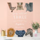 Thème safari amusant 3ème anniversaire signe de fête avec illustration d'animaux sauvages. Le panneau indique "jeune, sauvage et trois".
