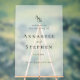 Élégant, blanc, transparent, mariage, signe acrylique avec vos monogrammes, noms et date. Faites de votre journée spéciale une expérience inoubliable avec notre Affiche de bienvenue acrylique, un mélange parfait de design minimaliste, d'élégante simplicité et de luxe. Cet accessoire intemporel est plus qu’une simple décoration, c’est un accueil chaleureux pour vos invités, donnant un ton élégant dès leur arrivée. Notre panneau d'accueil acrylique allie des matériaux de haute qualité à un design élégant et moderne. La surface brillante reflète subtilement la lumière, ajoutant une touche d'exclusivité à votre célébration mariage. Parfaitement proportionné, l'enseigne s'intègre harmonieusement dans n'importe quel décor mariage, rehaussant votre espace de réception par une touche distinctive. Un accueil mémorable Montrez votre attention aux détails et l'amour pour les accents de bon goût et de haute qualité avec notre signe acrylique d'accueil. C’est l’ajout idéal à un mariage élégant, symbolisant votre engagement à créer une expérience magnifique et mémorable.