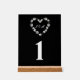 Elevate your wedding decor with this sophisticated black acrylic table number. Featuring a crisp white floral heart wreath and customizable initials (J&M), this sign combines modern minimalism with romantic elegance. The high-quality acrylic finish paired with a natural wood stand creates a chic, freestanding look perfect for monochrome or contemporary wedding receptions. Easy to personalize and designed to make a lasting impression on your guests' tables.