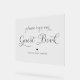 Demandez aux clients de signer votre livre d'or avec ce panneau d'acrylique personnalisable. Il comprend la calligraphie noire avec la typographie simple. Personnalisez en ajoutant vos noms. Ce panneau calligraphie est parfait pour n'importe quel thème ou saison mariage. Des éléments correspondants sont disponibles.