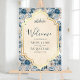 Panneau En Acrylique Blue Cream Floral Gold Muslim Wedding Welcome