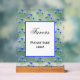 An acrylic table top sign with wood stand will certainly get noticed. The background and image can be personalized. Original artwork by W.B.