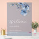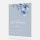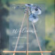 Fine art blue watercolor flowers on a transparent blue background wedding welcome foam board.