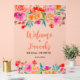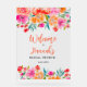 L'amour est en fleurs ! Boho orangé fleurie nuptiale bienvenue signe transparent avec joli peint à la main de fleurs orange, rose et jaune aquarelle illustration avec une police de script élégant moderne disant avec feuillage bohème verdure. Parfait pour le printemps, l'été en plein air jardin nuptiale ou mariage.