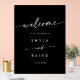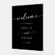 Ce mariage noir blanc et simple et moderne accueille l'acrylique de signe est parfait pour un mariage minimaliste. Le design bohème moderne présente une calligraphie rustique simple avec un style unique mais classique. Parfait pour toute saison : printemps, été, automne ou hiver. Customisez votre signe de mariage de bienvenue avec les noms du couple et la date.